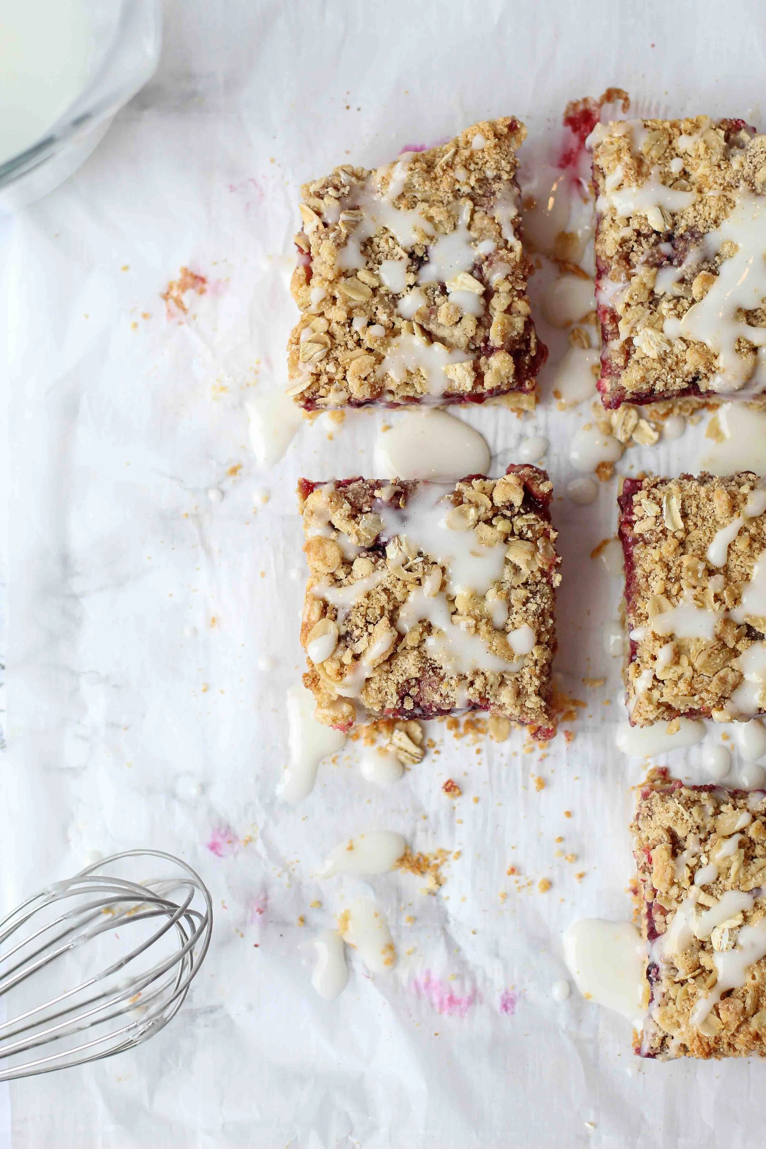 These bars are bursting with fresh flavor from the berries and you would never know they are gluten free. Start by making an easy shortbread-like layer for the bottom. Spoon the berry filling on top and then sprinkle on the crumble topping. Finish them off with a drizzle of a lemon glaze to really bring out the best flavor in the berries.